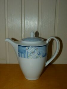 【送料無料】キッチン用品・食器・調理器具・陶器 収集可能なホワイト磁器ウェッグウッドホームインディゴトールコーヒーポットCollectable White Porcelain Wedgwood Home Indigo Tall Coffee Pot 1995 H19cms