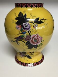 【送料無料】キッチン用品・食器・調理器具・陶器 ヴィンテージバーカーブラザーズ株式会社イエロー上海花瓶メイアワークスロングトンVintage Barker Bros Ltd Yellow Shanghai Vase Meir-Works Longton 7.5