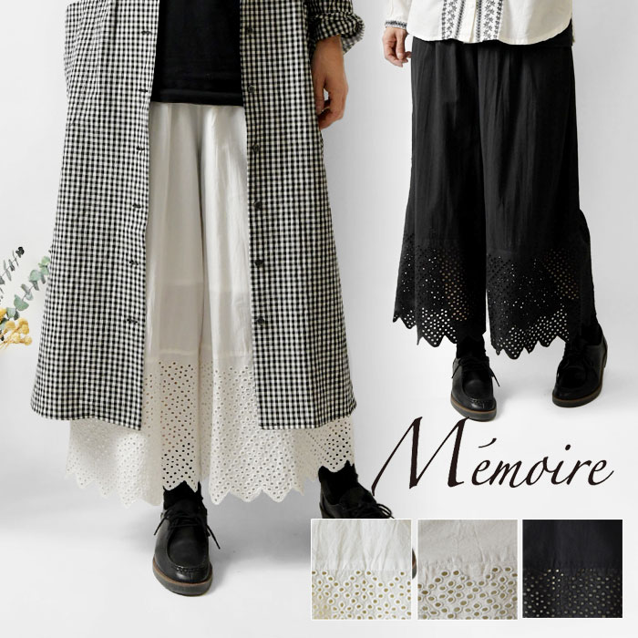 【SALE 30%OFF】【Memoire メモワール】コットン アントルメ シフリー 刺繍 パンツ(s4516-620)レディース 春 夏 秋 冬 ゆったり 体型カバー フレア ワイド インド 綿100 インナーパンツ ナチュラル 服 おしゃれ 人気 30代 40代 50代 60代 ペチパンツ