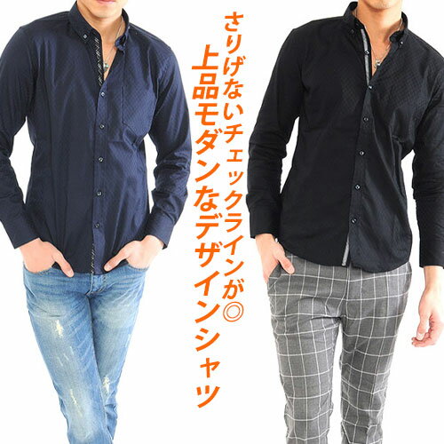 シャツ メンズ Men's 長袖 ボタンダウン テープ チェック 無地 白シャツ モノトーン 黒 shirt シャツ シンプル プレーン きれいめ モダン 春 春服 新作トラッド スタイリッシュ