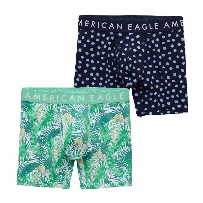 アメリカンイーグル AMERICAN EAGLE メンズ Men's ボクサーパンツ 下着 2枚セット AEO 6" Classic Boxer Brief 2-Pack 股下15cmモデル グリーン パームツリー ネイビー ドット