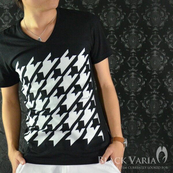 BLACK VARIA ブラックバリア blackvaria Tシャツ 千鳥柄 千鳥格子 チドリ Vネック 半袖 プリントTシャツ メンズ mens ファッション おしゃれ(ブラック黒) zkk007