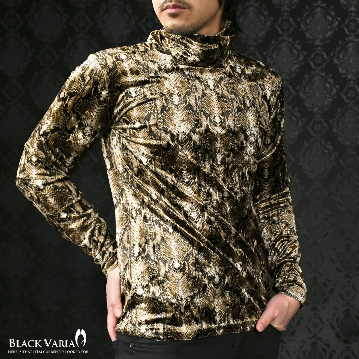 BLACK VARIA ブラックバリア blackvaria タートルネック パイソン 蛇 ベロア アニマル ボリュームネック 長袖 ストレッチ 日本製 メンズ mens ファッション おしゃれ (ブラウン茶ホワイト白) 183713