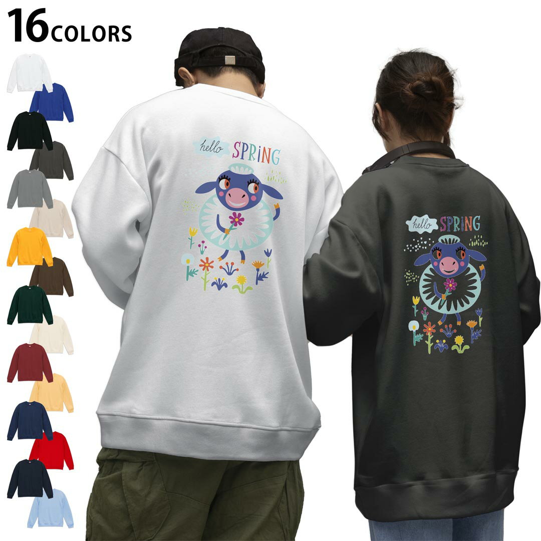 選べる16カラートレーナーバックプリント メンズ レディース ユニセックス 長袖 ホワイト グレー ブラック デザイン S M L XL 2XL sweatshirt trainer スウェット 019057 アニマル キッズ