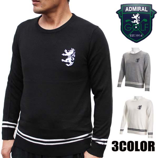 【★30%OFFクーポン★店内全品対応・11月27日01:59迄】アドミラルゴルフ Admiral GOLF メンズ ビックランパント クルーネックセーター 蓄熱保温素材 ADMA472 ニット ゴルフウェア アドミラルゴルフ アドミラル セーター ブラック グレー ネイビー M L LL
