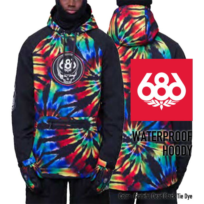 【全品ポイント10倍!要エントリー20日20:00〜27日01:59迄】2023-24 686 MEN'S WATERPROOF HOODY Grateful Dead Black Tie Dye シックスエイトシックス ロクハチ スノーボードウェア メンズ フーディ ジャケット 2024 日本正規品