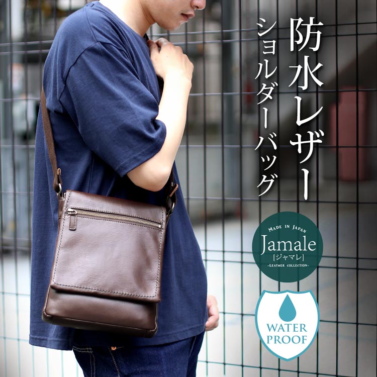 【BLACK FRIDAY10%OFF!!】Jamale [ジャマレ] 【名入れ 可能】日本製 防水レザー 牛革 ショルダーバッグ メンズ 肩掛け 雨 旅 公園 カバン かばん 父 旦那 記念品 父 贈り物 プレゼント ギフト (07000332-mens-1r)