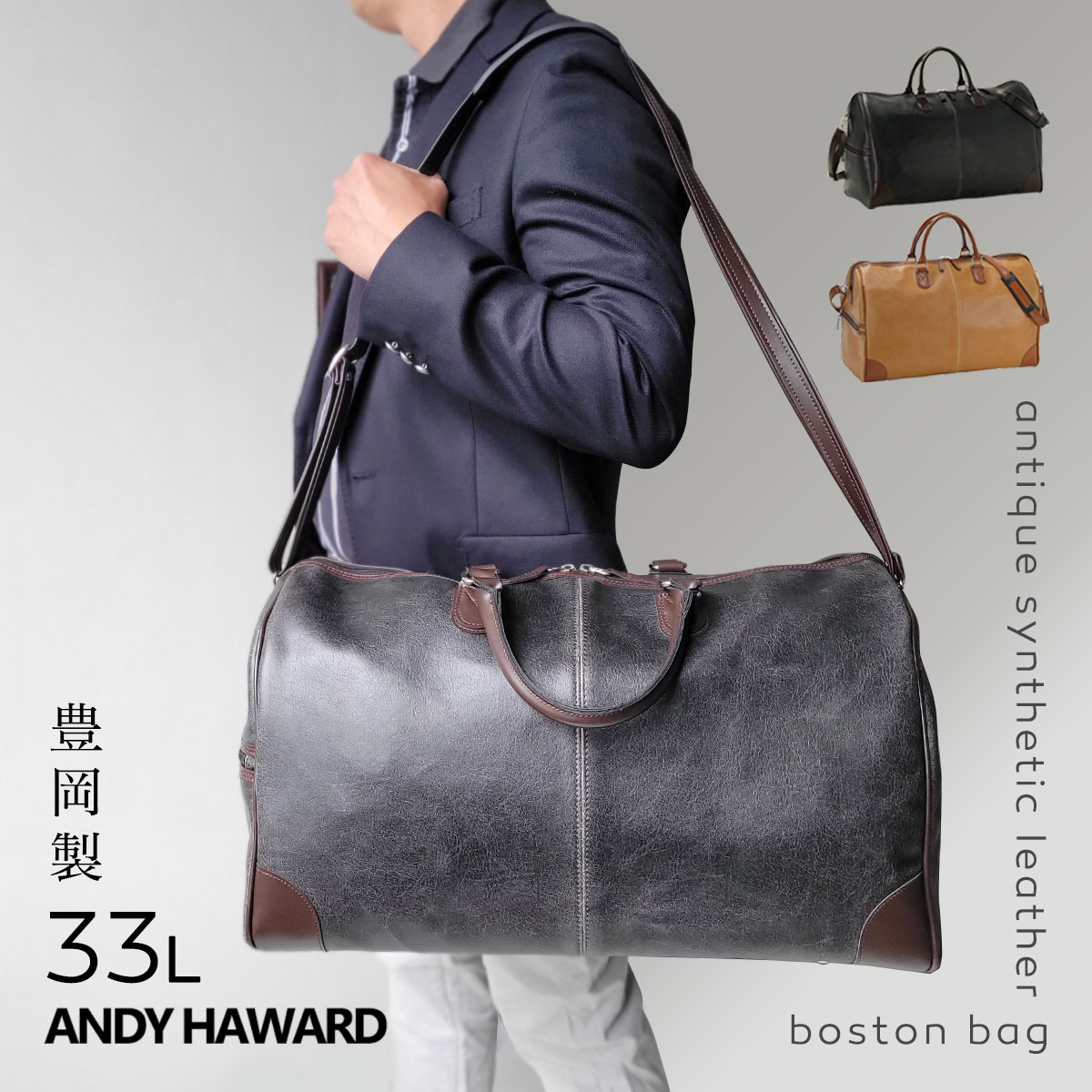 ボストンバッグ 33L メンズ 紳士 旅行かばん バッグ アンディハワード 白化合皮レトロシリーズ ボストンバッグ 黒 10414 メンズ 男性用 mens 紳士 バッグ かばん 人気