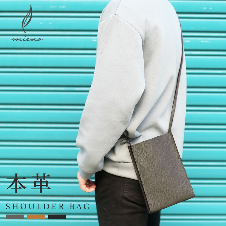 【最大20%オフクーポン】ショルダーバッグ 本革 ミニ バッグ 小さい 小さめ ショルダー メンズ 男性 牛革 革 レザー 軽い シンプル 無地 カジュアル 縦型 サコッシュ 薄い スリム 斜めがけ 黒 ブラック かるい かばん mieno spira ブランド (07000566-mens-1r)