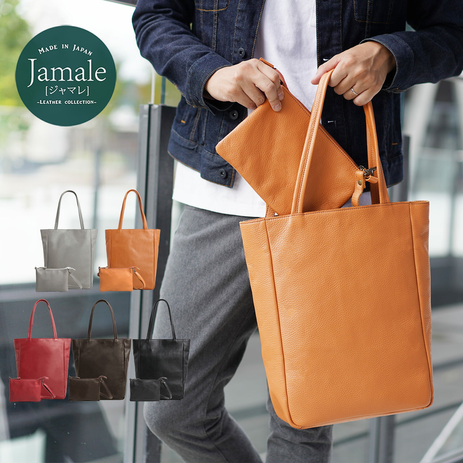 本革 撥水 トートバッグ サコッシュ セット メンズ 牛革 撥水 Jamale 日本製 親子バッグ 縦型 トート a4 ブランド 無地 肩かけ 革 肩掛け 持ち手 かるいかばん 上品 jamale ジャマレ レザー 通学 通勤 ビジネス (07000460-mens-1r) クリスマス ギフト プレゼント