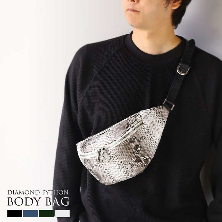 ダイヤモンド パイソン ボディバッグ メンズ きれいめ ファニーパック 横型 本革 軽量 軽い ワンショルダー カジュアル 蛇革 レザー 超軽量 ボディーバッグ ギフト プレゼント 男性 カジュアル 休日 お出掛け かばん 肩掛け 斜め掛け 4FA (06001826-mens-1r)