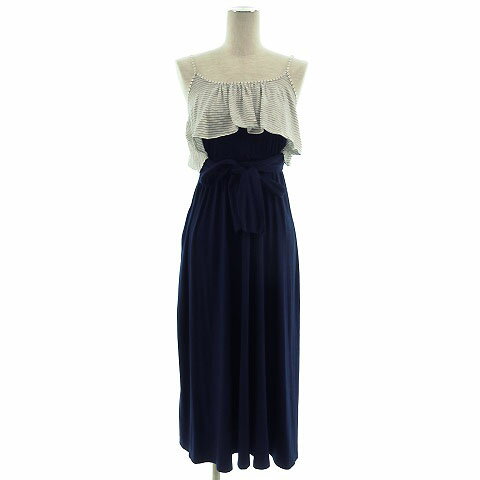 【中古】マーキュリービジュー Mercury Bijou ワンピース ロング ノースリーブ ボーダー 切替 ネイビー 紺 ホワイト 白 F レディース 【ベクトル 古着】 210821