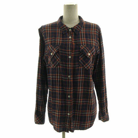 【中古】マーキュリービジュー Mercury Bijou シャツ 長袖 コットン混 チェック ネイビー 紺 オレンジ 黄土色 グレー ホワイト 白 F レディース 【ベクトル 古着】 230927