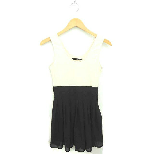 【中古】マーキュリービジュー Mercury Bijou ワンピース ひざ丈 バイカラー フレア プルオーバー ノースリーブ F 薄茶 黒 ベージュ ブラック /TT18 レディース 【ベクトル 古着】 210524