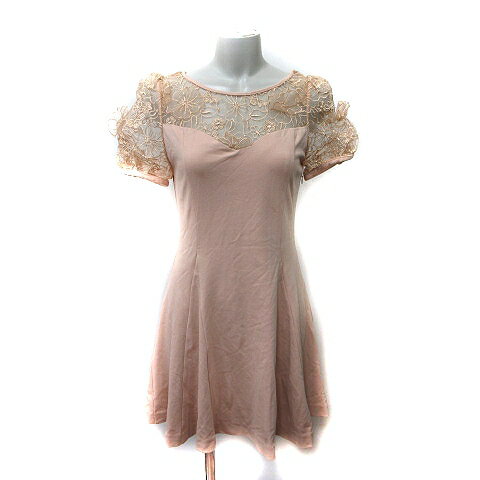 【中古】マーキュリービジュー Mercury Bijou ワンピース ひざ丈 半袖 切替 チュール レース 刺繍 F ベージュ /YI レディース 【ベクトル 古着】 250401
