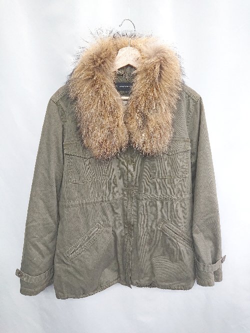 ◇ MERCURY Bijou MERCURYDUO チャイニーズラクーンファー 3WAY 長袖 ジャケット サイズF カーキ レディース P 【中古】