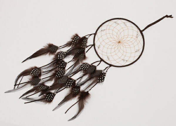 6インチ(15cm) 大きいドリームキャッチャー DC476BR ブラウン色 北米インディアンに伝わる神話/カナダ先住民の手作り 本当のドリームキャッチャー/カナダ製