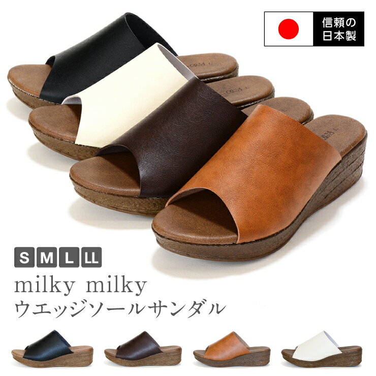 【送料無料】【信頼の日本製】milky milky ミルキーミルキー ウェッジソールサンダル オフィスサンダル 厚底 クッション 美脚 ミュール 歩きやすい 旅行 カバードサンダル ベランダー履き 厚底サンダル 仕事 室内履き 黒 白 ブラック Ark-Shoes アークシューズ nm-5350