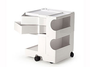 BobyWagon/ボビーワゴン 4段4トレイ Designer - Joe Colombo/ジョエ コロンボ(ジョーコロンボ ) メーカー - B-line/ビーライン イタリア製 Size - W430×D420×H945 mm トレイ内寸:幅255×奥行297mm トレイ深さ:浅いトレイ40mm、深いトレイ70mm 重量:14kg カラー White/ホワイト 4段タイプは、抜群の収納力で美容院や病院などでも人気があります。とにかく収納したい、小物を整理したいという方にお勧めです。 トレイに関しまして 【2種類のトレイ】約7cmの深いトレイと約4cmの浅いトレイの2種類があります。 ※2トレイは深いトレイ、3トレイは浅いトレイになります。 【ワンプッシュスライドトレイ】 押すだけで簡単に開閉、最大約180度回転します。 【トレイの大きさ】 A4用紙がちょうど入るサイズです。 【フレキシブルボックス】 サイドの収納部分の底板が簡単に取外しでき、ポスター等長いものも収納可能です。 Joe Colomboデザインのボビーワゴン。製図用としてつくられたデザインですが用途は様々でワゴンとしての役割としてとても機能的に使用できます。サイズも1段、2段、3段、4段とありトレイの数もバリエーションがございますので用途に合わせてご考慮下さい。 インナートレイ1点付属(正規輸入品限定特典) 多機能ワゴンの代名詞 MoMAパーマネントコレクション ボビーワゴンは、キャスター付きの本体を回転させることで側面4面すべてを効率的に使える、デザイン性と機能性に優れた収納家具です。 180°回転するトレイや、ボトル類の保管に適した奥行きのあるポケットなど、機能性に富んだ収納スペースが随所に工夫されています。ABS樹脂製で汚れの拭き取りも簡単。 イタリアンデザインの黄金期1960年代を彗星のごとく駆け抜け、数多くのプロダクトを残して41歳の若さでこの世を去った天才デザイナー ジョエ・コロンボが1970年にデザインし、その後のロングセラー商品として50年以上経った現在でも世界中で愛用されています。 SMAU賞(イタリア)を受賞したほか、MoMAのパーマネントコレクションにも選定されているプロダクトデザインの名作です。 保証 お買い上げから2年間 ボビーワゴンの正規輸入代理店である弊社が取扱うB-LINE社の「ボビーワゴン」には、2年間の品質保証がございます。商品に付属している製造番号カードと保証書はお買い上げ後、大切に保管してください。また、製品を永くご使用いただけるよう保証期間以降も、パーツ単位での細やかなアフターサービスを行っております。 ※並行輸入品など弊社以外のルートで輸入されたボビーワゴンにはこれらの保証が一切適用されません。