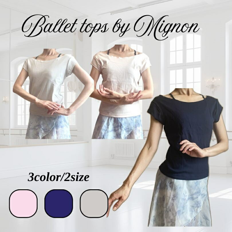 【ブラックフライデーP10倍※要エントリー】 バレエ トップス 大人【ミニヨン/Mignon】 ボートネック フレンチスリーブ デコルテラインが美しい Tシャツ 半袖 レディース ジュニア 大人リーナ レッスン着 バレエ用品 日本製 綿100%