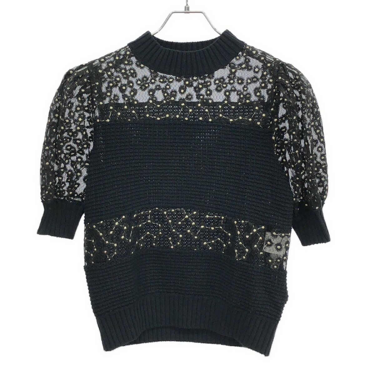 SEVEN TEN by miho kawahito セブン テン バイ ミホ 25SS オーガンジーレースニットトップス 9S204 ブラック S 【中古】 ITHLOXOTIWWW