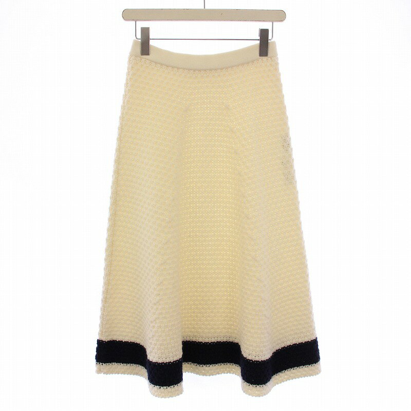 【中古】セブンテンバイミホカワヒト SEVEN TEN by MIHO KAWAHITO Aラインニットスカート フレア イージー ミモレ ロング ウエストゴム 編み込み ウール混 M アイボリー 紺 ネイビー /BB レディース 【ベクトル 古着】 250621