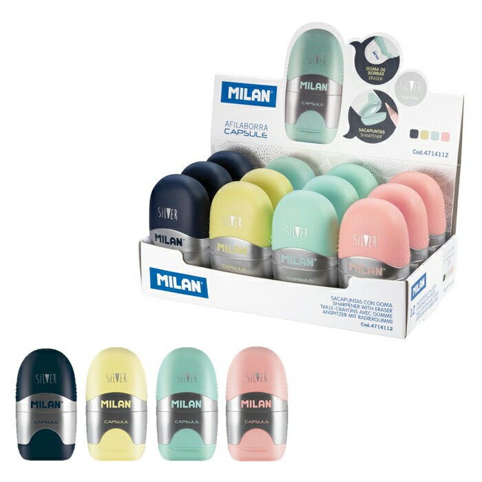 MILAN ミラン 消しゴム & 鉛筆削り CAPSULE 【SILVERシリーズ:12個セット】おしゃれ かわいい ヨーロッパ 文房具 文具 けしごむ ケシゴム えんぴつ プレゼント 入学準備 カプセル