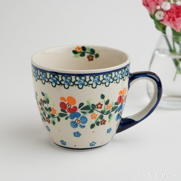 SPECIFICATION Size 飲み口φ8.5cm、H7.5cm Material ストーンウエア Volume 約:230ml(満水時) Function 電子レンジ、食器洗浄機 対応 Maker Millena社(ミレナ) Made in Poland Package この商品はボックス入りではありません。 COMMENT Polish Pottery ポーリッシュポタリー ポーランド陶器の特徴はなんと言ってもその可愛さ!とってもかわいく鮮やかな釉薬がたくさん使われて、手作りの磁器製品です。 素朴なフォルムが愛らしさの源です。飲み口から下に窄(すぼ)まったフォルムは、素朴で可愛らしい印象です。小さい頃に使っていた歯磨き用のコップってこんな形じゃなかったっけ、そんなノスタルジックな雰囲気があります。懐かしいようなホッとするような、心が温まる形だと思います。 ミレナらしいフェミニンな花柄。縁取りに使われているフリーハンドでのスケッチのような花柄のスタンプと、花々をつなぐ茎の曲線がとてもミレナらしい雰囲気を出しています。ブルーの小さな花を中心に5色の花々が散りばめられた愛らしいパターンデザインは、柔らかく優しい印象を与えてくれます。 ポーランドのかわいい伝統陶器(ポレスワヴィエツ陶器)はポーリッシュポタリーとも呼ばれ、ヨーロッパのみならずアメリカでもとても愛されております。そして、近年では日本でも親しまれつつあります。 ポーランドの陶器、「ボレスワヴィエツ陶器」とは、ポーランドの町の名前で、ドイツとチェコの国境に近いポーランド南西部にその小さな美しい町はあります。 この地域は陶器にとって良質な土壌に恵まれ、16世紀頃から陶器づくりが盛んに行なわれてきました。いくつもの工房があります。 ボレスワヴィエツ陶器は、すべて手作りのものです。絵付けは、スポンジのスタンプをひとつひとつ押していく方法が知られていますが、この作業はとても細かい作業です。 陶器の模様は本当にたくさん種類があります。それぞれの工房で様々な模様が生み出されています。 ボレスワヴィエツ陶器は、とても丈夫で、電子レンジ、オーブン、また食器洗浄機も使うことができます。普段の生活の中に溶け込みやすい、とても便利な陶器です。 見た目の可愛らしい魅力だけでなく、丈夫で日常使いに便利で、不思議と食卓で馴染むのです。カントリーティストの温か味と懐かしさが感じられます。 手作りで絵柄も多いので、必ずしも定期的に同じデザインが再入荷するとは限りません。一期一会の出会いを楽しんでいただけたらと思います。 REMARKS Quality 手作業の商品の為、破損、ヒビ割れ、鋭いバリ残以外は良品になります。 ピンホール、色塗装のチリ・汚れ、高台裏のカケ、塗装不均一などはメーカー良品基準内です。 良品のみをお届けしておりますので、輸送中の破損以外は、返品・交換には対応できません。 ご理解の上、お買い求めくださいませ。 こちらの商品はラッピングがお受けできない商品です。あらかじめご了承下さい。詳細はこちらポーランド陶器マグ新着! Entry:210828 2108 21sm 21 長期にわたる在庫切れが予想される商品はラインナップからのリンクが表示されない場合があります。 その場合にはまことに恐れ入りますが、ブラウザの「戻る」でお戻りください。 ポーランド陶器マグのフルラインナップは こちらから