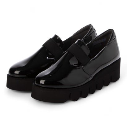 ゴアベルトのスリッポンは2WAYで楽しんで。すっきりとしたアーモンドトゥのレザースリッポンに、ゴアベルトでエッジを効かせました。ゴアベルトは2WAY仕様で、内側に入れるとプレーンなスタイルになります。アッパーに施されたインナースポンジで足あたりがよく、滑りにくいEVAソールは厚底でありながら驚くほど軽く、安定感があります。※本革(天然皮革)の商品について素材の特性上、多少のキズやシワ、色ムラや擦れが見られる場合がございます。汗や雨などで濡れた場合、色移りする場合がございます。革の品質保持のため、できるだけ濡らさないようご注意下さい。23.5cm : 【重さ】265g / 【ヒール寸】5cm / 【プラットフォーム高さ】3cm別カラーはこちら! ブラック(ブラックエナメル) ブラック(ブラックスムース)