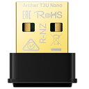 【返品種別B】□「返品種別」について詳しくはこちら□2022年10月 発売メーカー保証期間 3年【ご購入後のお問い合わせにつきまして】本製品に関する技術的なご質問・修理・初期不良等につきましては「TP-Linkサポートセンター」へお問い合わせください。[TP-Linkサポートセンター]電話番号 : 0120-095-156(通話料無料) 受付時間 : 9:00〜18:00(※土日祝日、年末年始休暇を除く)■デュアルバンド接続で安定した接続を高速で安定した5GHz WiFiと、幅広く利用されている2.4GHz WiFiの両方に対応しているのでウェブブラウジングから4K動画のストリーミングまで様々なアクティビティに対応可能です。■MU-MIMOでスループット向上MU-MIMO技術により2つの同時データストリームを提供し、MU-MIMO対応ルーターと接続している場合、ネットワーク全体のスループットと効率を向上させます。■より安全なセキュリティ規格WPA3に対応最新のWiFiセキュリティプロトコルであるWPA3は、パーソナルネットワークのセキュリティを向上させます。WiFiパスワードの安全性強化と、ブルートフォースアタックへの耐性が強化され、WiFiをさらに安全にご利用いただけます。■超小型デザインArcher T3U Nanoは超小型のデザインなので家庭内での利用はもちろん、PCに刺したままカバンに入れて持ち歩いてもストレスになることはありません。インターフェイス : USB 2.0無線LAN : IEEE 802.11b/g/n 2.4 GHz、IEEE 802.11a/n/ac 5 GHzワイヤレスセキュリティ : WEP、WPA/WPA2/WPA3、WPA-PSK/ WPA2-PSK、WPA3-SAE本体サイズ : 19.85 × 15.7 × 7.39 mm付属品 : かんたん設定ガイド、リソースCD動作環境 : Windows 11/10/8.1/8 が搭載されているパソコン[ARCHERT3UNANO]パソコン周辺>ネットワーク機器>Wi-Fi>Wi-Fi子機