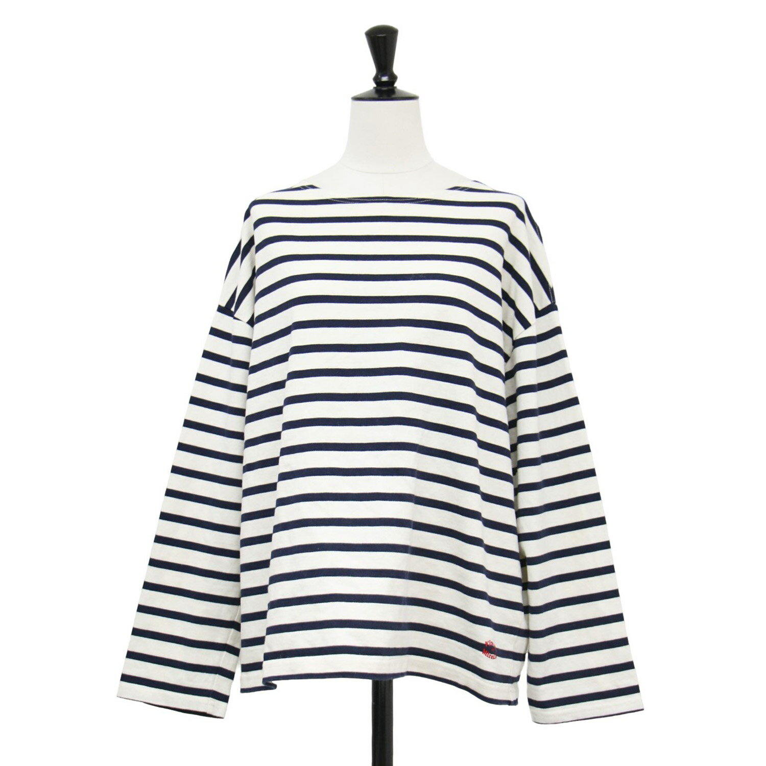 Vincent et Mireille ヴァンソン エ ミレイユ Tシャツ ホワイト ネイビー 白紺 サイズ:FREE | ボーダー ロングスリーブ Tシャツ / カットソー | プルオーバー ボートネック 長袖 コットン | 日本製 | トップス【レディース】【中古】【K4637】