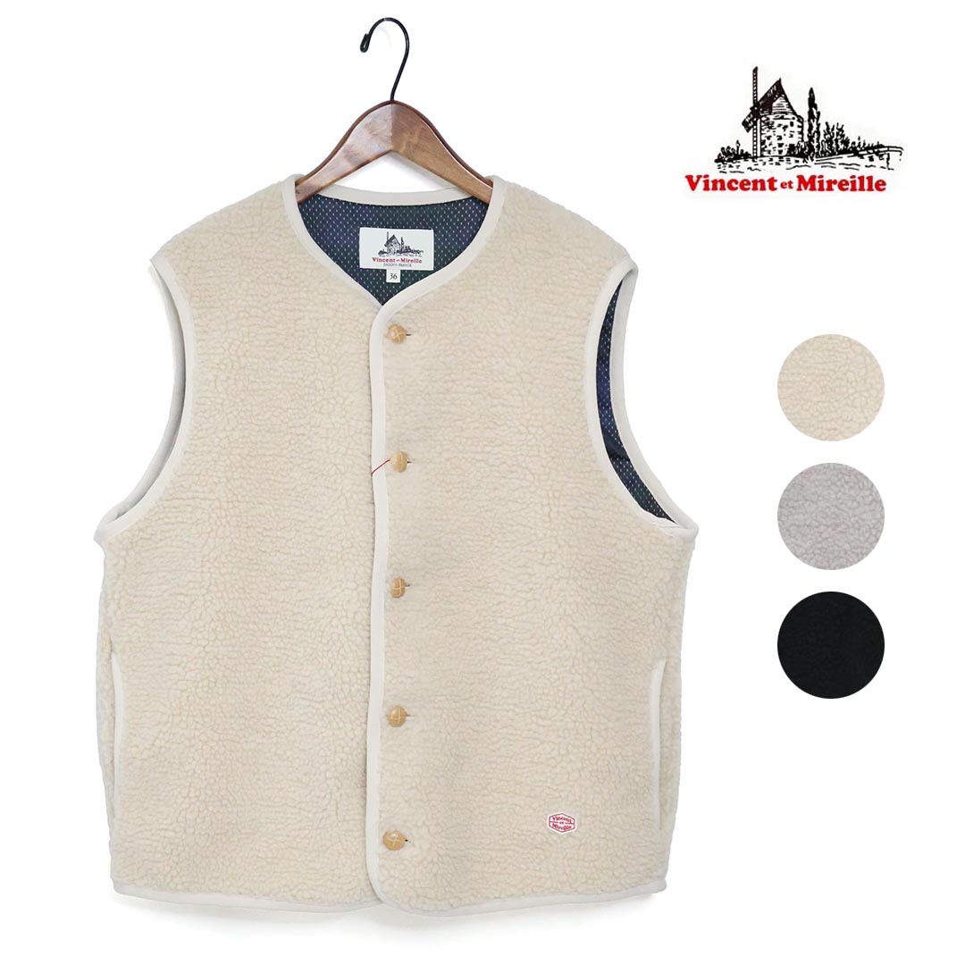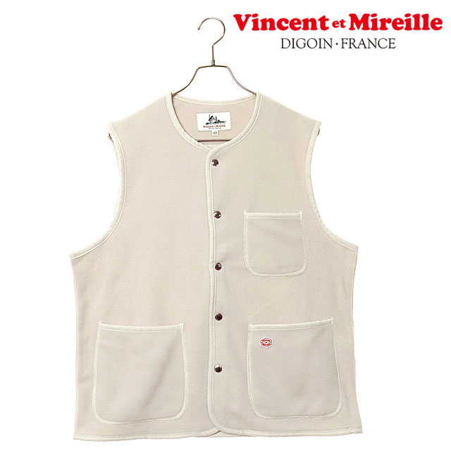 ヴァンソン エ ミレイユ VINCENT ET MIREILLE フリースベスト [VM252FL00230-03 FW25] FLEECE VEST メンズ ライトアウター 前ボタン OFF-WHITE 正規取扱店