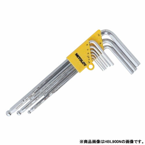 ≫ 商品詳細 ≪ ●短辺部は従来品(HBL900)の2倍の長さです。 ●深い箇所での本締め可能です。 ●最大傾斜角30゜です。 ●ボールポイント部分は精度の高いブローチ加工です。 【仕様】 ●セット内容(mm):1.5、2、3、4、5、6、8、10 ●セット入数(本):9 ●重量:470g 【材質/仕上げ】 ●ニッケルクロムモリブデン鋼(Ni-Cr-Mo-V) 【セット内容/付属品】 ●ホルダ ※画像は代表イメージです。