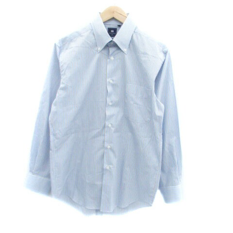 【中古】ミツミネ Mitsumine カジュアルシャツ 長袖 ストライプ柄 L マルチカラー 水色 ライトブルー /HO15 メンズ 【ベクトル 古着】 250519