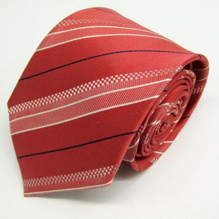 ミツミネ ブランド ネクタイ ストライプ柄 シルク 日本製 PO メンズ レッド MITSUMINE 【中古】