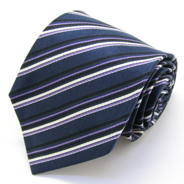 ミツミネ ブランド ネクタイ ストライプ柄 マルチストライプ シルク 日本製 PO メンズ ネイビー MITSUMINE 【中古】