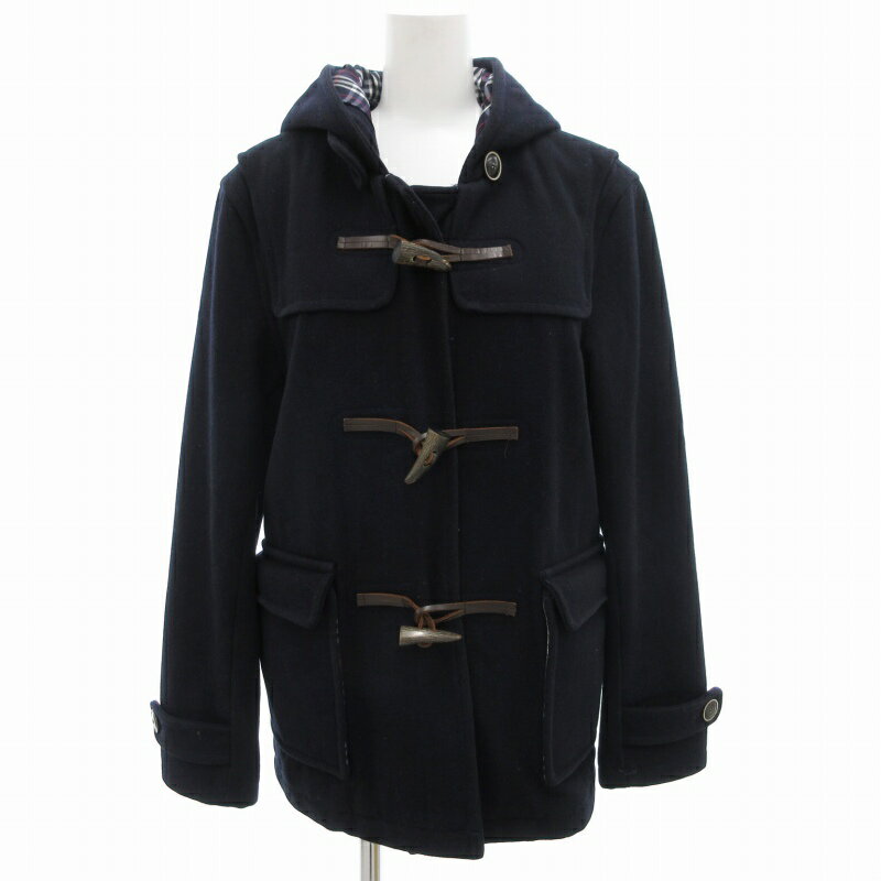 【中古】ミツネ MITSUMINE フーデットダッフルコート ショート トグルボタン 裏地チェック L 紺 ネイビー /GV レディース 【ベクトル 古着】 250612