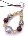 天然石水晶銀彫り青龍&ルチルクォーツ&ガーネットのストラップ