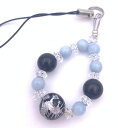 風水四神!天然石オニキス銀彫り青龍&アクアマリンのストラップ
