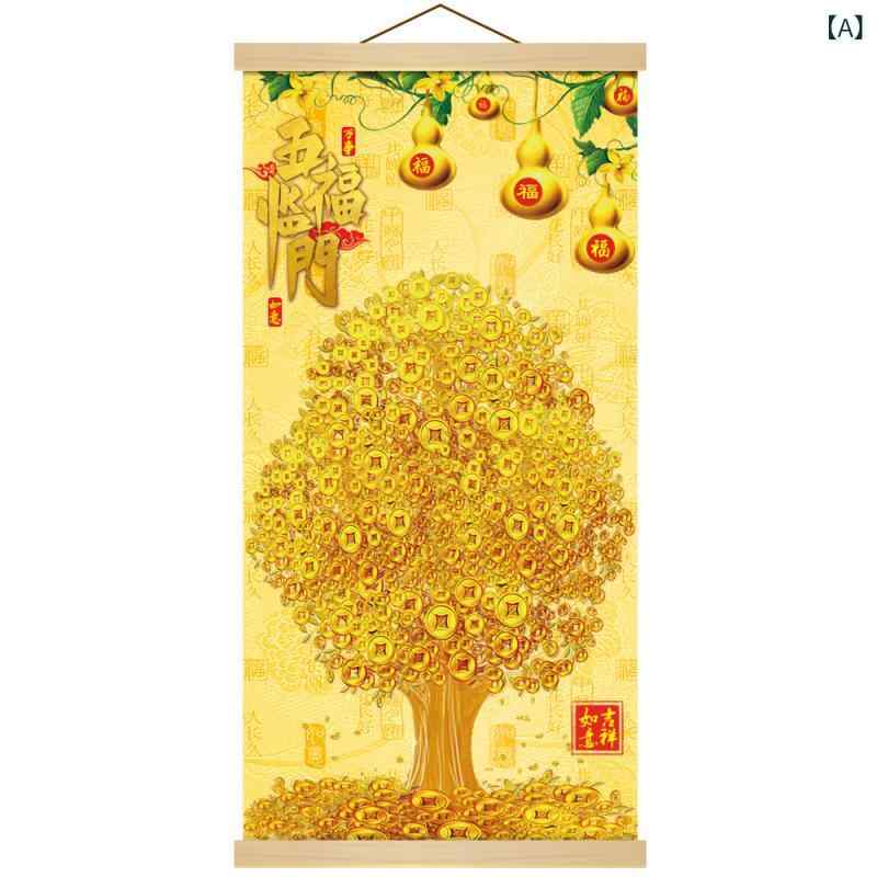 ・カテゴリ: 装飾画・スタイル: 新中国風・柄: 植物花柄・絵画素材: 絹布・印刷技法: スプレーペイント・枚数: 1枚・フレーム素材: プラスチック・装飾方法: フレームなし、壁掛け式・デザイン展開: 五福臨門-招財樹、福-招財樹、招財進宝-招財樹、福-発財樹・サイズ展開: 40x80cm、50x100cm、60x120cm、70x140cm