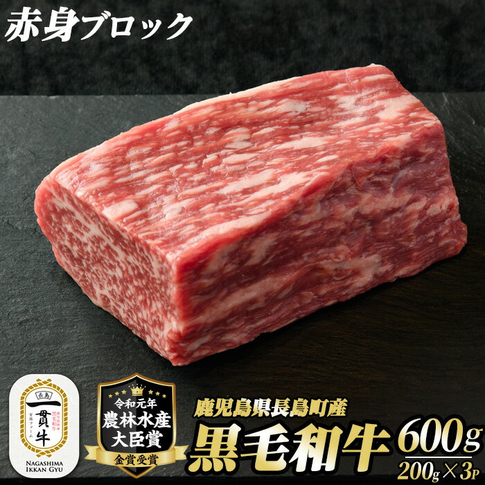 【ふるさと納税】鹿児島県長島町産 黒毛和牛赤身ブロック(計600g・200g×3P)黒毛和牛 和牛 特産品 国産 赤身 赤み ブロック 塊肉 牛 ウシ 牛肉 ステーキ 焼肉 BBQ バーベキュー ローストビーフ レア 希少部位 農林水産大臣賞 個包装 小分け【宮路ファーム】f-miyaji-7033