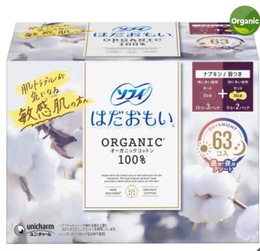 【スーパーセール限定!10%OFF!期間限定!】ソフィ はだおもい オーガニックコットン 100% 羽付き 特に多い昼用 15個 x 4 + 特に多い夜用 8個 x 1 SOFY Hadaomoi Organic Cotton 100% with Wing Heavy Day 15ct x 4 + Heavy Night 8ct x 1 ct59804