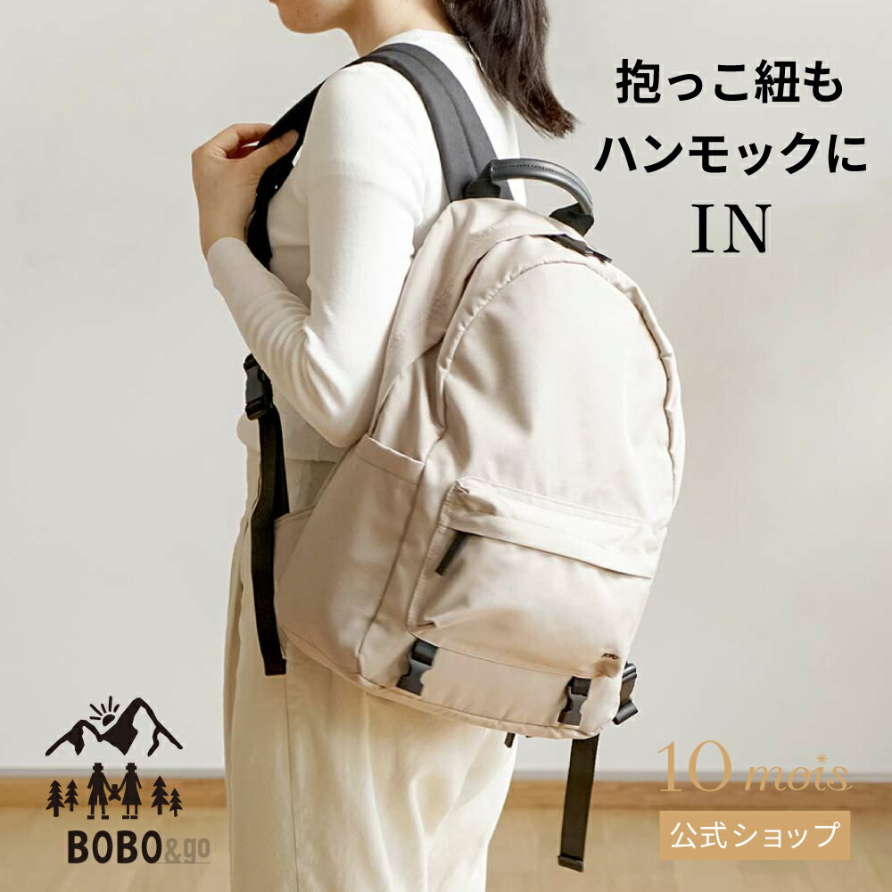 ★全品ポイント5倍!20日20:00〜27日1:59★ 【10mois 公式】BOBO ボボ &go(アンドゴー)メッシュハンモック付き マザーズリュック ベージュ[軽量 大容量 マザーズバッグ 撥水 送料無料]