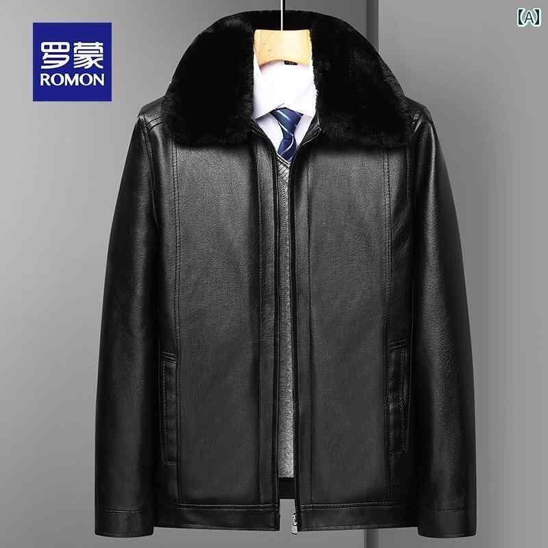 レディース カジュアル トップス ロモンのお父さんの 冬 コート 毛皮の 襟 2024 裏起毛 厚手 メンズ レザージャケット