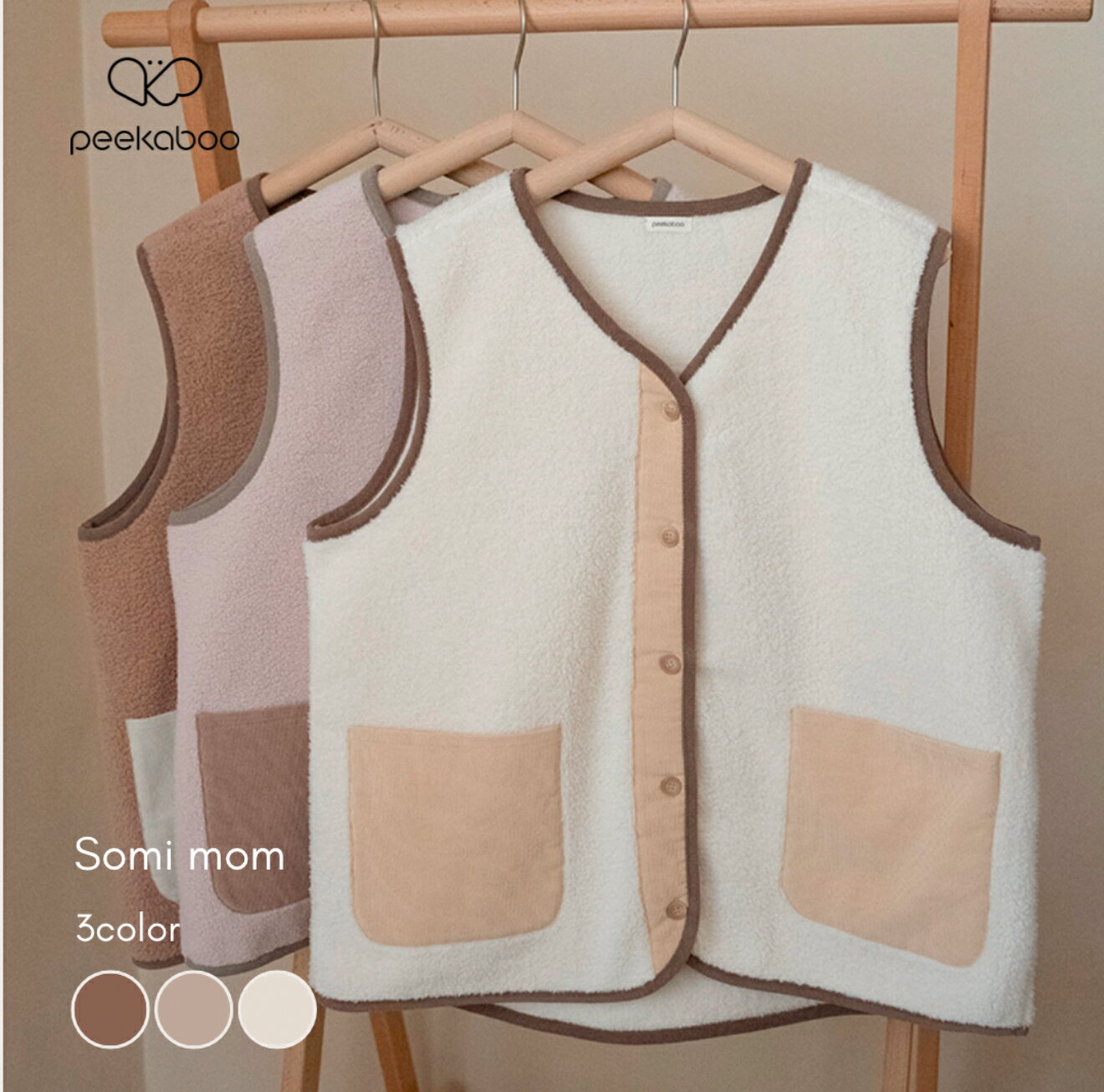 【peekaboo-mom】Somi vest mom ママサイズ ボアベスト もこもこ 暖かい 家族お揃い ニュアンスカラー 姉妹お揃いコーデ 親子コーデ ベスト 秋冬 リンクコーデ 韓国子供服