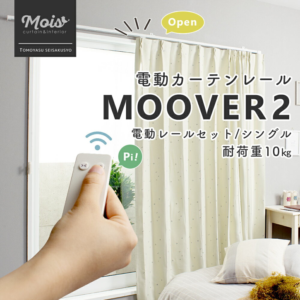 オススメポイント ★電動カーテンレール「MOOVER2 ムーバー2」 -------------------------------------------------- 電動カーテンレール「MOOVER2 ムーバー2」は、遠隔操作でカーテンの開閉が出来るリモコン式の電動カーテンレールです。 取付方法も簡単で価格もリーズナブルで、MOOVER専用のクワトロタイマーを使用すればタイマーでカーテンを開閉させることが出来ます。 ★耐荷重アップ -------------------------------------------------- 従来のムーバーより2倍以上の10kgと20kgでリニューアル!ご家庭にはもちろん、ホテルや施設などにもおすすめです。 ★タッチモーション機能搭載 -------------------------------------------------- カーテンを手で引くと、引いた方向に自動で動きます。カーテンの近くにいる時や、リモコンが近くにない時にも便利な機能です。 ★毎日のカーテンの開け閉めが面倒な方へ -------------------------------------------------- 電動カーテンレール「MOOVER2 ムーバー2」は、遠隔操作でカーテンの開閉が出来ます。 だから布団に入ったままでも付属のリモコンで簡単にカーテンの開閉が出来て、忙しい時でもテレビの電源を消す感覚でリモコンでカーテンの開閉がワンタッチで可能。離れたところからカーテンの開閉操作ができます。 また、体調がすぐれなくて寝込んでいる時や高齢者や介護が必要な方、手が届かない高窓の家・学校・幼稚園・病院・福祉施設にもおすすめです。 ★スタイリッシュでシンプル!取り付けも簡単! -------------------------------------------------- レールを付けてモーターをセット、電源プラグをコンセントに挿し込むだけで配線工事の必要はありません。 音も静かでモーターや電源コードがカーテンに隠れるので見た目もスタイリッシュでシンプル!取り付けも簡単なので、ちょっと変えるとかなりイイ!そんな時短で快適な生活を送ることができます。 電気代も1日に5分の開閉で1日あたり約0.7円(1kWh単価27円で計算)1か月で約21円(30日計算)と省エネな電動レールです。 ★一人暮らしの女性の防犯に -------------------------------------------------- 夜、カーテンの開いた部屋に帰るのはちょっと嫌ですよね。かと言ってカーテンを閉めっぱなしにすると昼間の日光が部屋に入らずせっかくの観葉植物も枯らしてしまう…。 そこで電動カーテンにクワトロタイマーを使えば、昼間はカーテンを開けておいて外が暗くなる時間にカーテンをタイマーで閉める。この電動カーテンレールがこれからの暮らしを変えてくれます。 ★省エネ対策に -------------------------------------------------- 夏は日が射す前にカーテンを閉めて部屋が暑くなるのを防ぎ、冬はカーテンを閉めて部屋を保温します。「電動カーテン」と「クワトロタイマー」を使えば、冷暖房のコストを抑えて環境にも家計にも優しい省エネ性能です。 ★帰りの遅い日や出張、長期旅行中の防犯に -------------------------------------------------- カーテンが閉まったままの家は留守ですよと言っているようなもの。 そこで「電動カーテン」+「クワトロタイマー」を使えば、人のいる気配を演出できて防犯に役立ちます。 ★タイマー機能で自動的にカーテンを開閉 -------------------------------------------------- 毎朝リビングのカーテンを開け、出かける時に閉める。朝の急いでいる時にこの面倒なカーテンの開け閉めをクワトロタイマー(別売)を使えば毎日開け閉めするリビングや寝室のカーテンをタイマーで自動的に開閉できます。煩わしい開け閉めの作業がなくなり、毎朝自然の光で爽やかに目覚めて体内時計をリセットして体調を整えてくれるので快適な毎日を送ることができます。 開閉速度を速くしたり遅くしたり、お好みの速度に調節することができ、卓上時計としてもリモコンとしても使えます。 ★1cm単位でサイズオーダーOK -------------------------------------------------- 片開きは最長2mまで、両開きは最長3mまで1cm単位でレールをご注文いただけます。 また、お部屋に合わせて選べるように天井付け、正面付けをお選びいただけます。もちろんカーテンの開き方も選べます。 商品詳細 ■セット内容 レール、モーターユニット、電源コード、*リモコン、ブラケット 速度調節用ドライバー *1chリモコン(シングル、電動+手引き) *2chリモコン(電動+電動) ■製作寸法 【CR1010の場合】:片開き 仕上幅 50 〜 300cm (1cm 単位 ) 両開き 仕上幅 50 〜 300cm (1cm 単位 ) 【CR1020の場合】:片開き 仕上幅 150 〜 300cm (1cm 単位 ) 両開き 仕上幅 150 〜 300cm (1cm 単位 ) ■カーテン重量 【CR1010の場合】:片開き 10 kg Max. 両開き 5 kg + 5 kg Max. 【CR1020の場合】:片開き 20 kg Max. 両開き 10 kg + 10 kg Max. ■開閉速度 【CR1010の場合】:50〜160mm/sec (無段階で設定可能) 【CR1020の場合】:60〜180mm/sec (無段階で設定可能) ■材質 レール アルミニウム 白色焼付け塗装 / モータ−ユニット ASA樹脂(ケース) ■寸法 レール 奥行き25.5mm×厚さ19mm / モータ−ユニット 幅46mm×奥行き46mm×長さ373mm ■モーター重量 490g ■定格入力 AC100V 50/60Hz ■消費電力 動作時 8W (15VA) 以下 待機時 1W 以下 (AC100Vの定