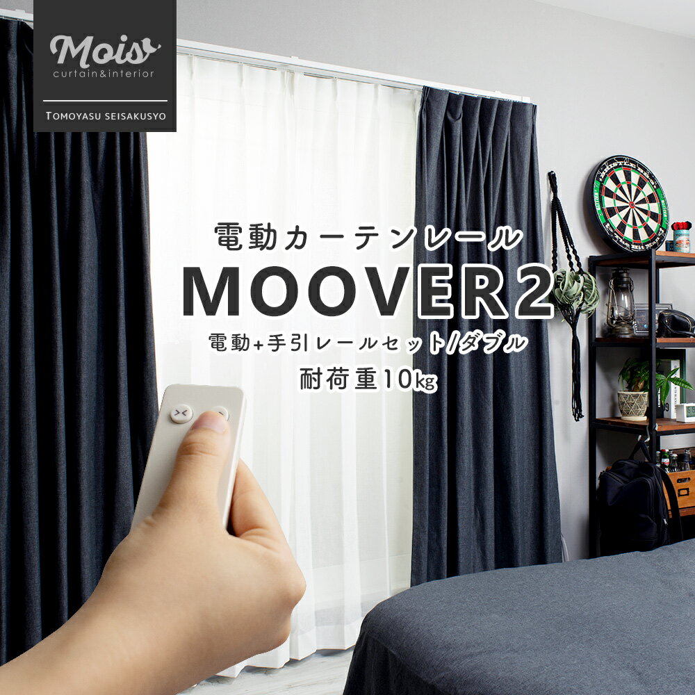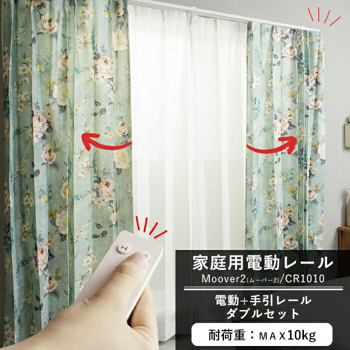 カーテンレール 自動 家庭用電動レール Moover2 CR1010 手引レールダブルセット 幅151〜200cm[メーカー直送品] [ムーバー 電動カーテン 電動カーテンレール 目覚ましカーテン 便利 介護 寝たきり 賃貸 一人暮らし 防犯 ホテル 施設] JQ