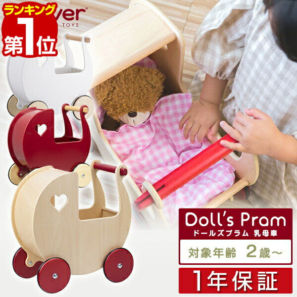 【楽天1位】Moover ムーバー ドールズプラム 乳母車 手押し車 人形用 ベビーカー 木製 歩行練習 赤ちゃん 2歳 3歳 4歳 男の子 女の子 子供 幼児 ベビー おもちゃ カート 工具不要 おしゃれ インテリア 正規品 1年保証 ■[送料無料]