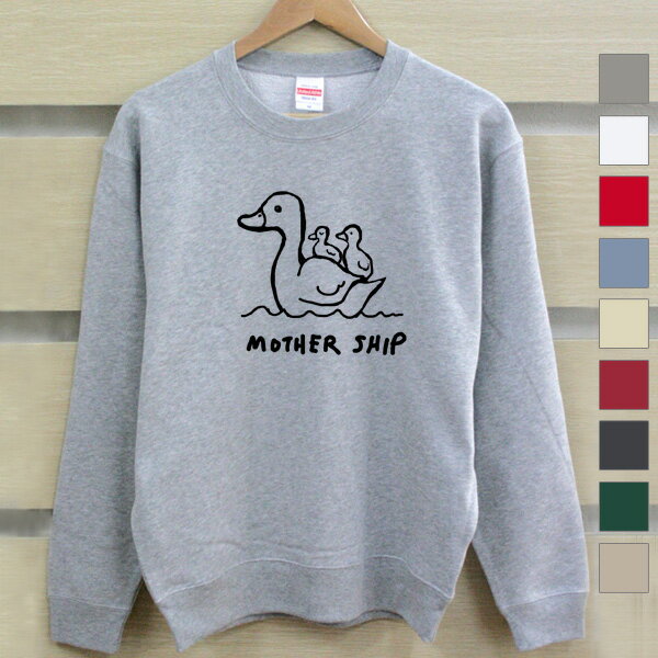 【名入れ無し】 長袖 トレーナー スウェット 誕生日 プレゼント MOTHERSHIP アヒル あひる 親子 ダック 鳥 動物 マザーシップ グッズ おもしろ 面白 忘年会 余興 景品 メンズ レディース 裏 パイル 誕生日プレゼント ママへ パパへ 親子 家族 お揃い 秋冬 送料無料 ブランド