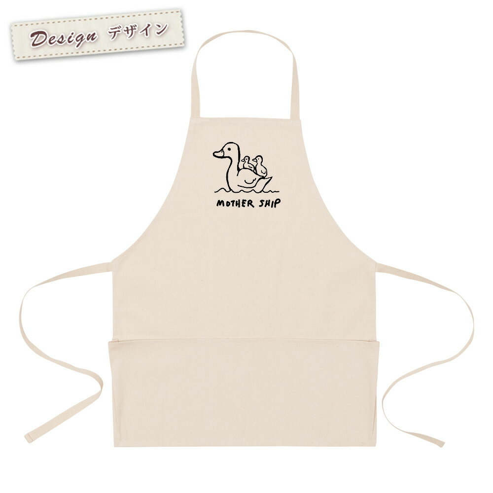 【名入れ無料】 エプロン 首掛け ポケット付き MOTHERSHIP アヒル あひる 親子 ダック 鳥 動物 マザーシップ 母艦 空母 グッズ おもしろ 面白 ギフト プレゼント メンズ レディース ナチュラル キャンバス地 ブランド ラッピング ココロコ 母の日 父の日
